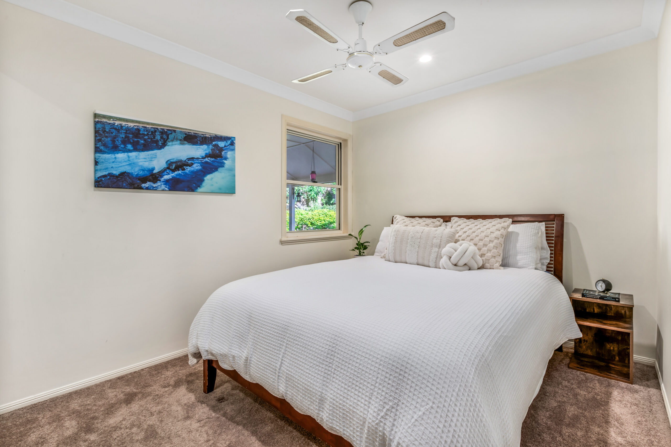 The master suite enjoys the same elevated northern views and private access to the front deck, creating a peaceful extension of the bedroom and a true parents’ retreat. Three further well-sized bedrooms, each capturing their own leafy outlook, are serviced by a generous family bathroom and separate toilet. Internal stairs connect to a spacious rumpus room – ideal as a teenager’s retreat, for multi-generational living, a work-from-home studio or a creative space designed to evolve with your family.