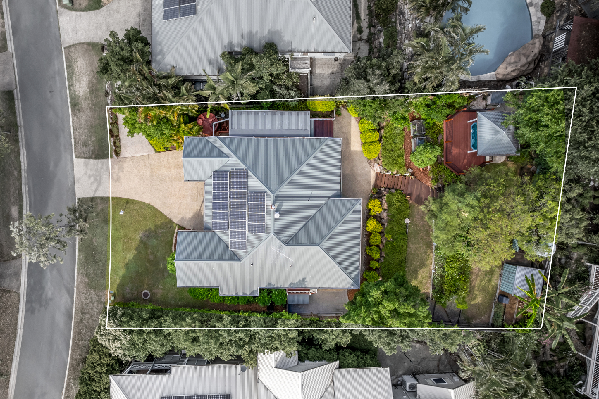 Outdoors, a terraced backyard leads to a private heated spa retreat at the highest point of the block, capturing sweeping views – the perfect place to exhale after mountain bike rides or a catch-up with the neighbours (and yes, this street is known for its legendary Christmas party).