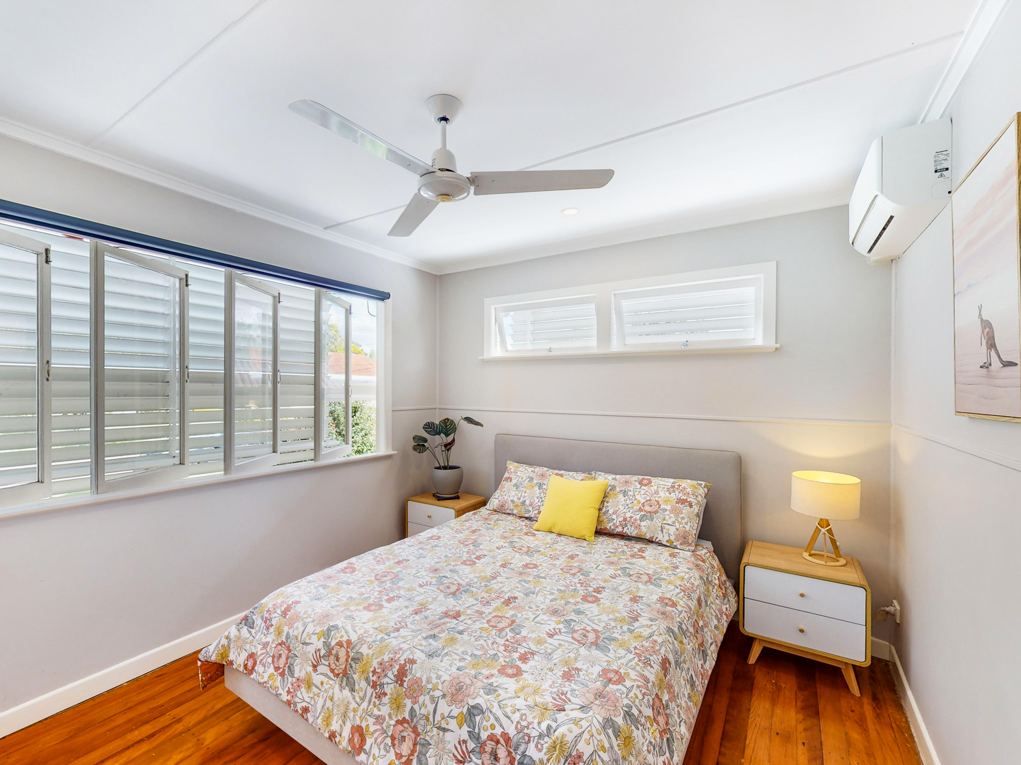 The home features three well-appointed bedrooms, all equipped with air conditioning for year-round comfort, along with a modern central bathroom. Outside, the property sits on a spacious block with low-maintenance landscaped gardens, providing both privacy and easy living.